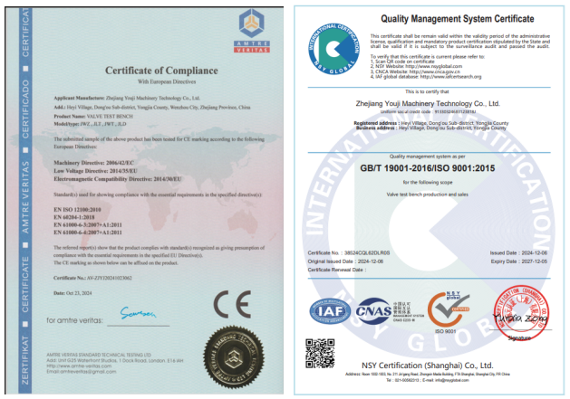 浙江優機閥門試驗臺車間的生產線JWZ\JWT\JLTD等系列產品順利更新通過了歐盟 CE認證編號和ISO9001質量管理體........